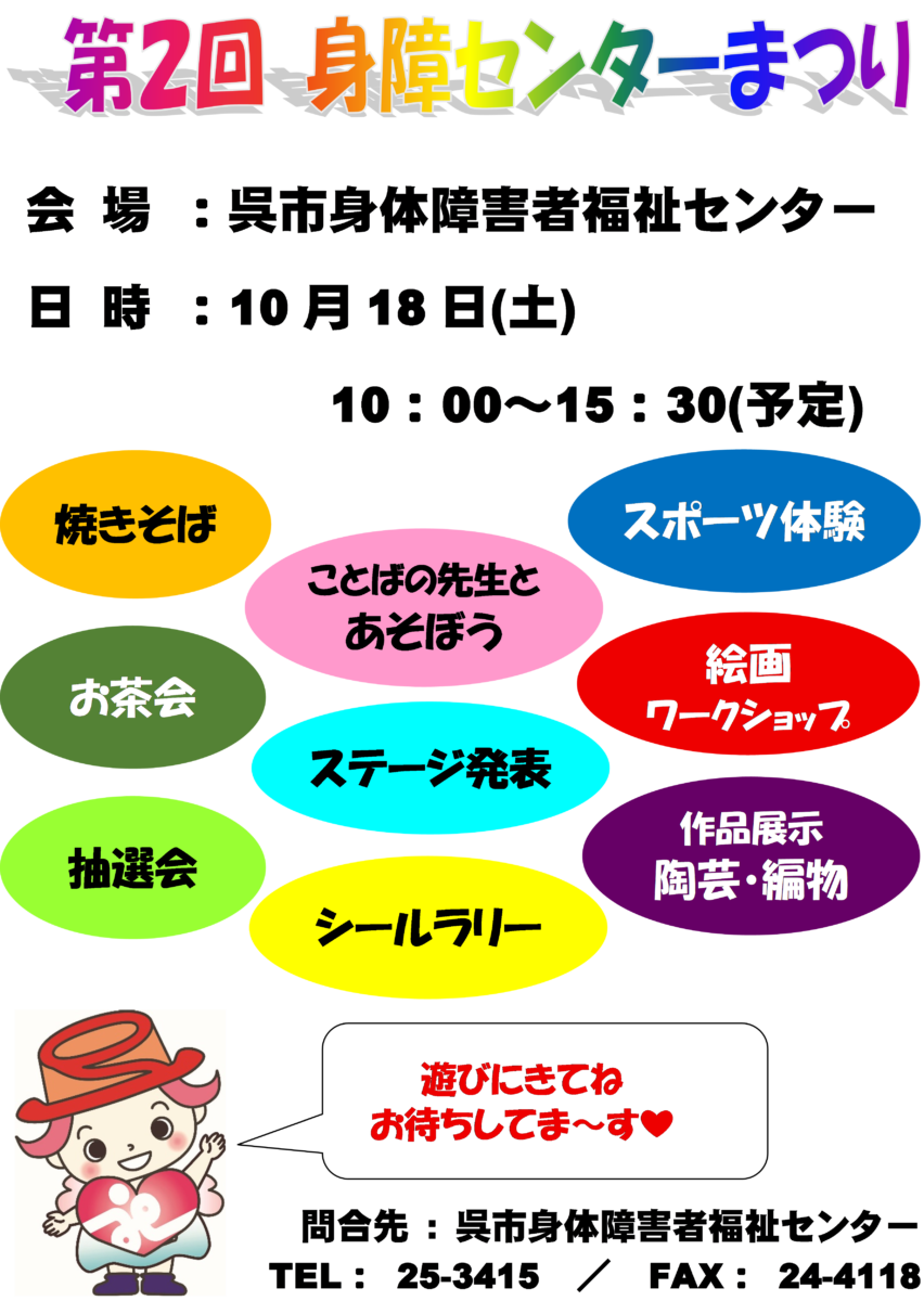 第2回身障センター祭り開催・ボランティア募集の案内