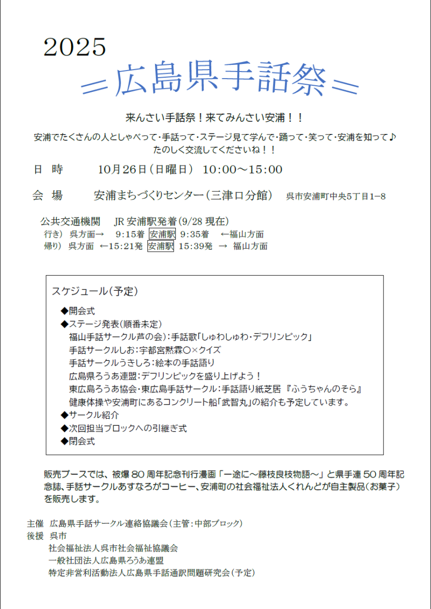 広島県手話祭が令和7年10月26日(日曜日)開催されます