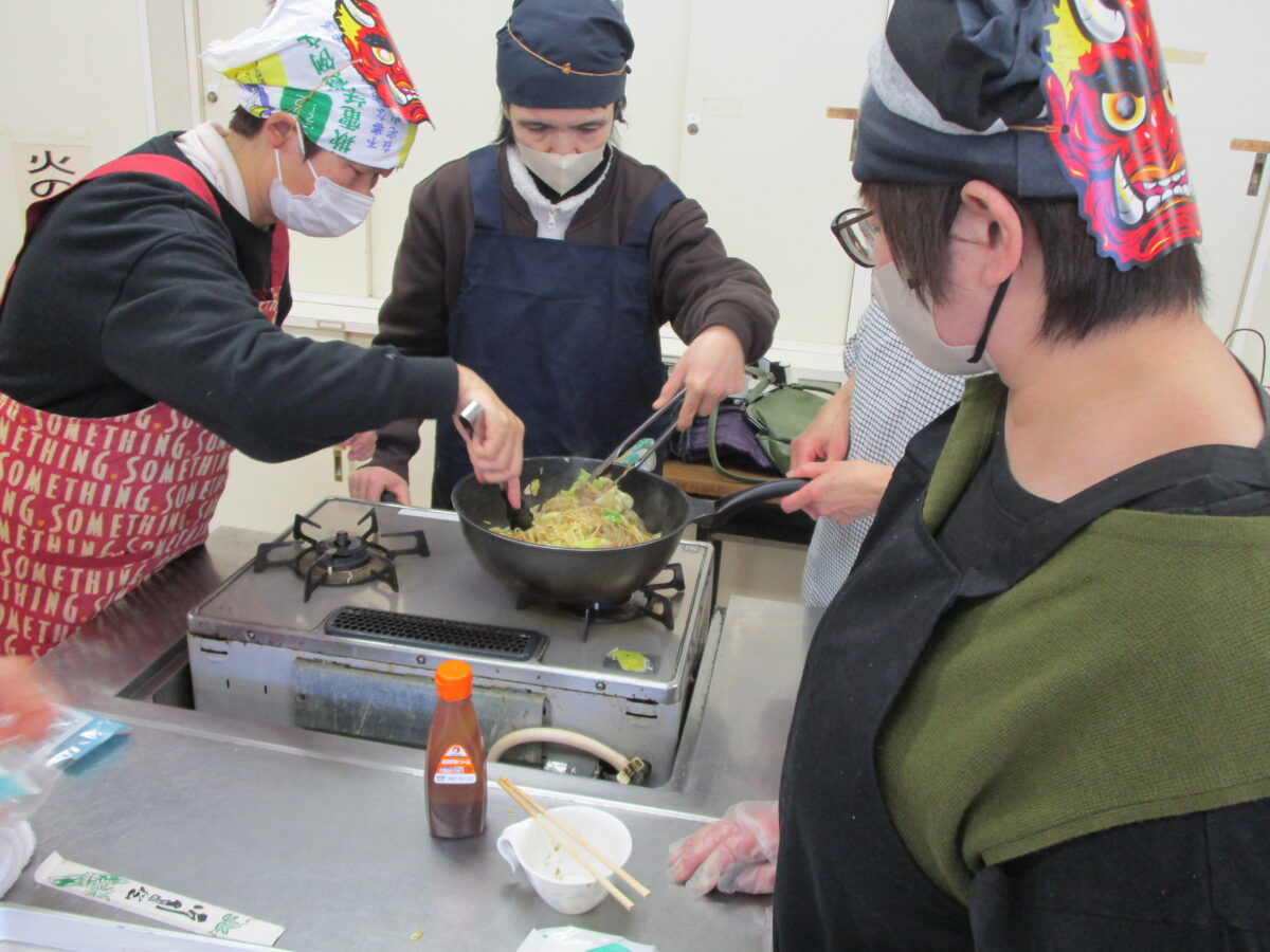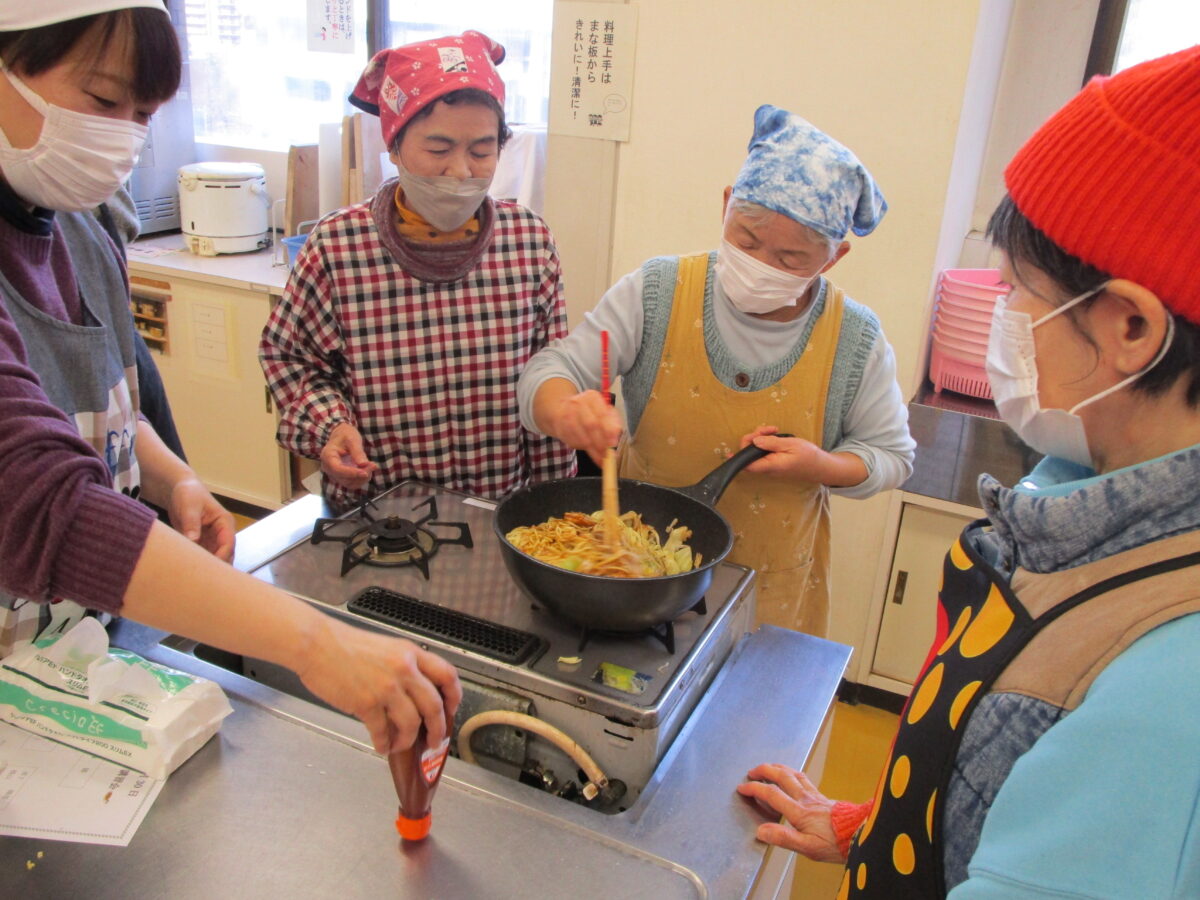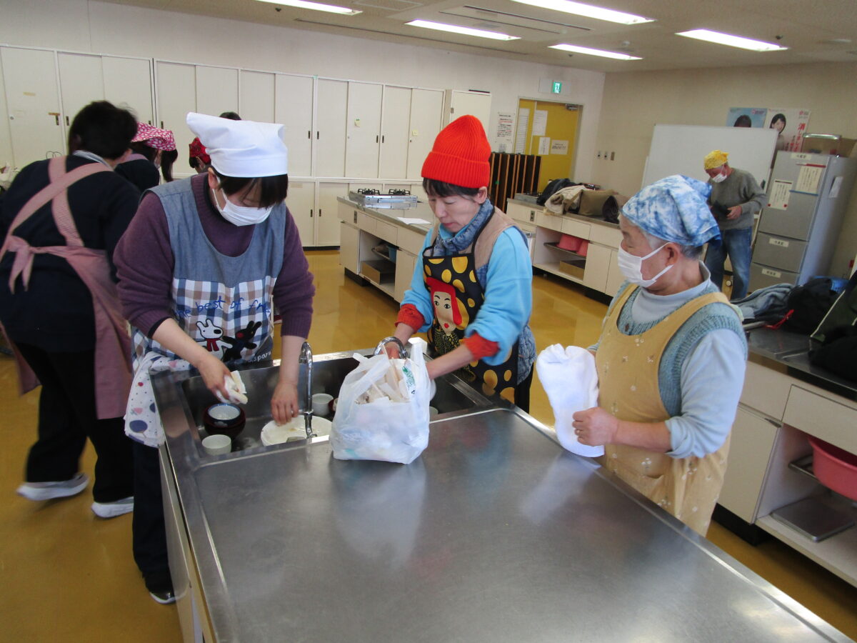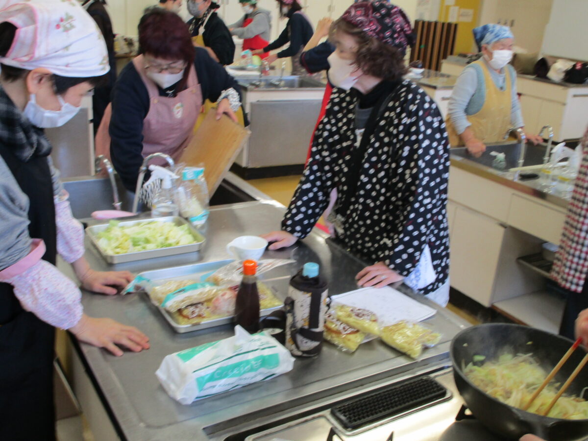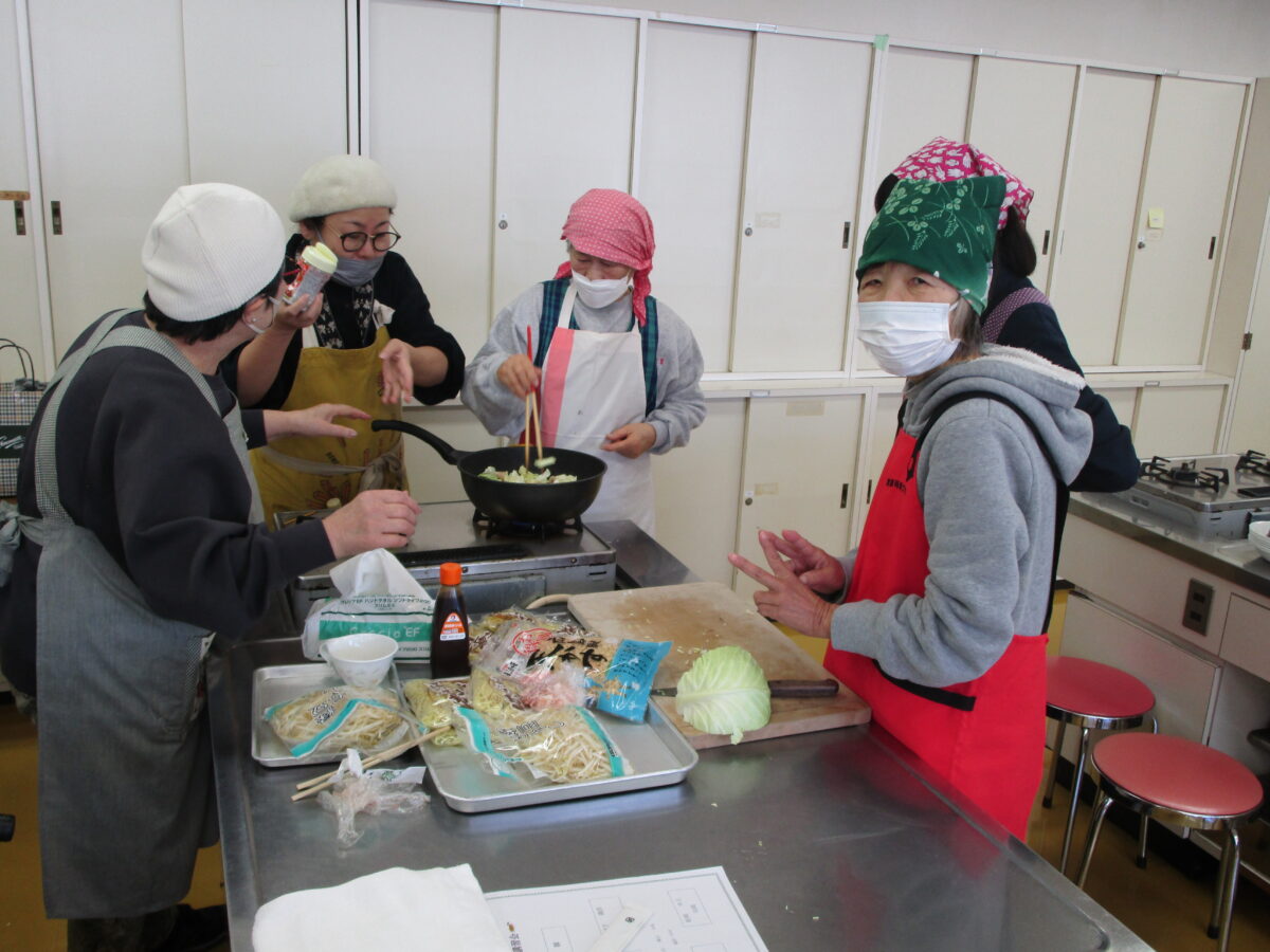 身体障害者福祉センターまつりにて、焼きそばを提供してくださった呉中央地区の民生委員の方々を、講師としてお招きし料理教室が開催されました。