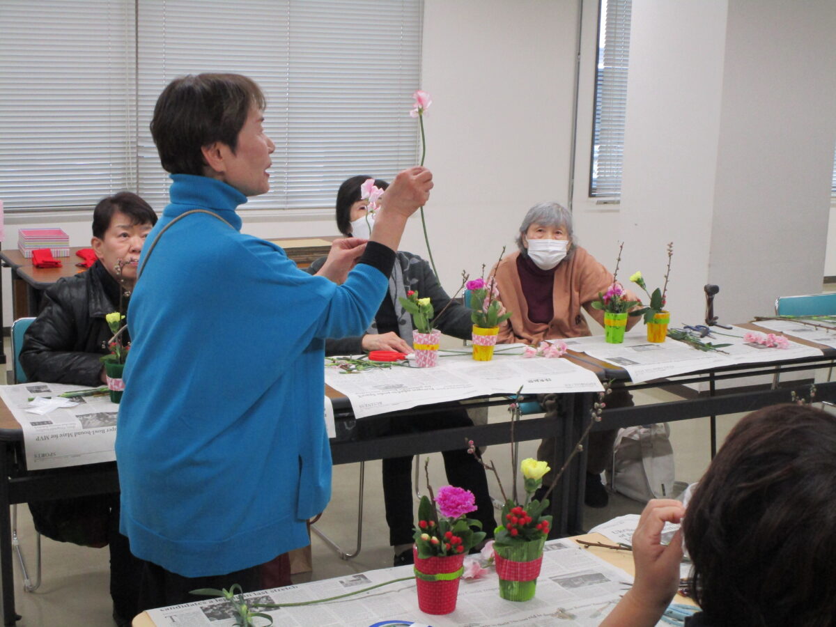 お知らせ 2026年02月20日 フラワーアレンジメント教室が開催されました 令和8年2月20日(金)、フラワーアレンジメント教室が開催されました。 お雛様をイメージした、桃などの花を使用した作品を制作されました。