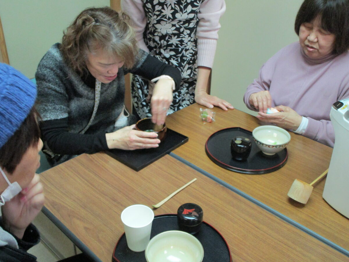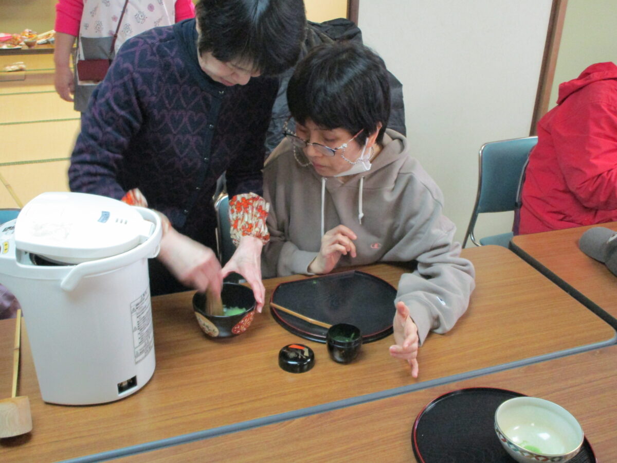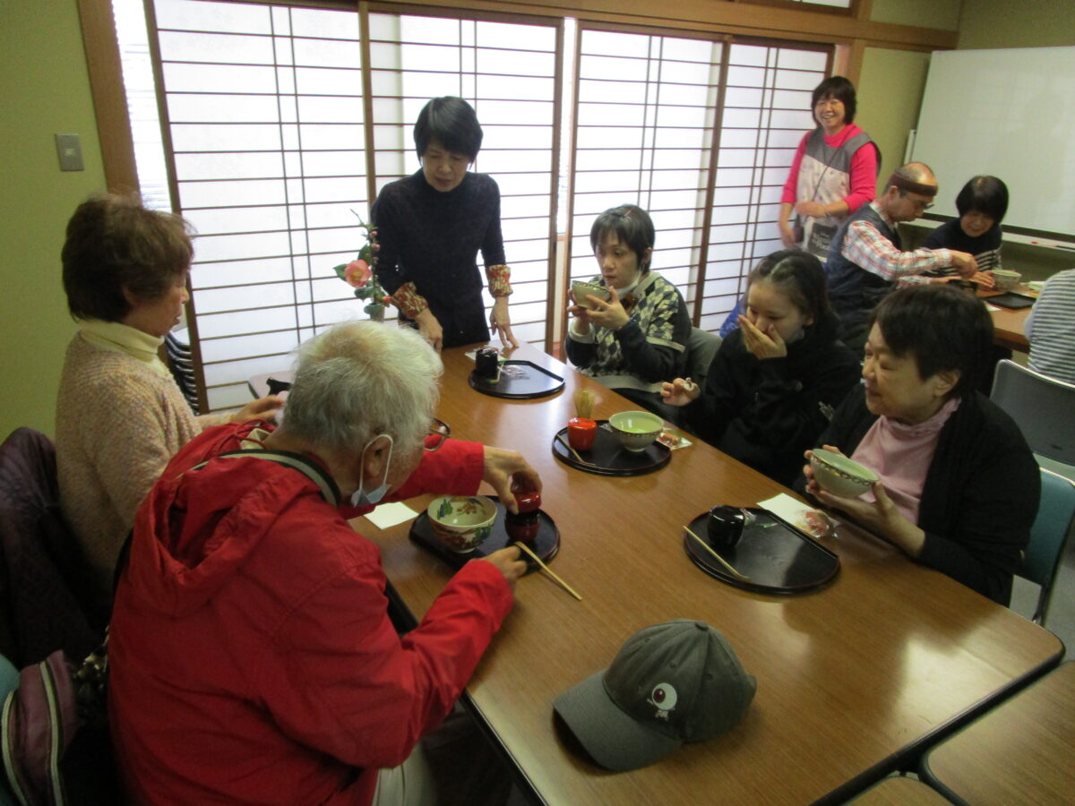 お知らせ 2026年03月06日 茶道教室が開催されました 多くの利用者が参加され、開催日3月3日は桃の節句ということもあり、お茶や茶菓子だけでなく、ひな人形と一緒に写真を撮ったりなど、楽しまれました。